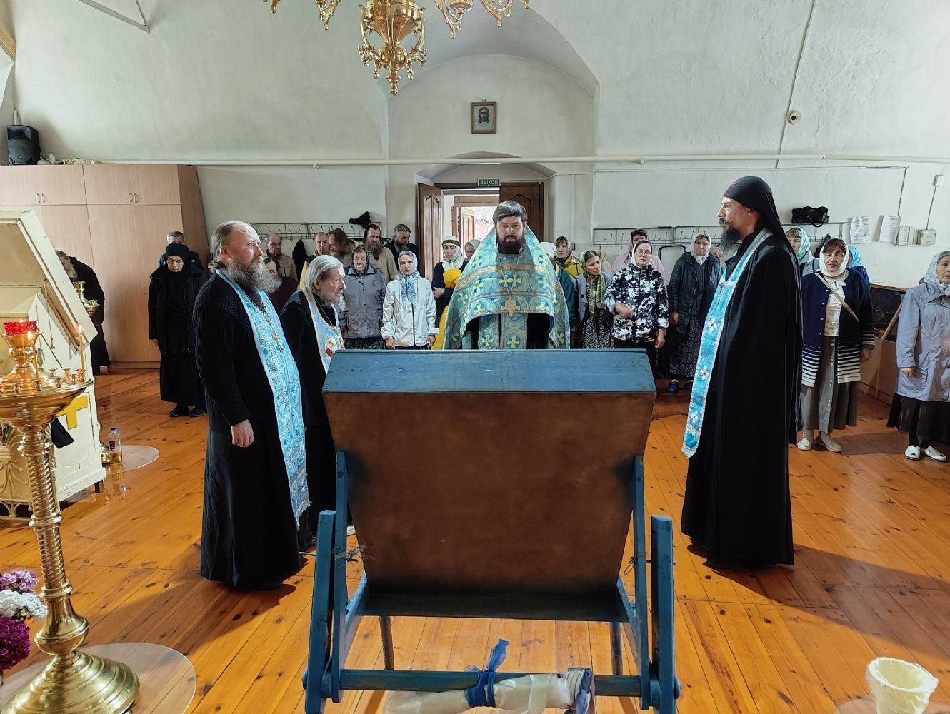 Здесь перед чудотворным образом был совершен молебен, возглавил который настоятель храма Владимирской иконы Богородицы с. Владимирское иерей Алексий Васюткин, духовно окормляющий крестный ход. Сослужили священники Горномарийского благочиния и гости в священном сане.