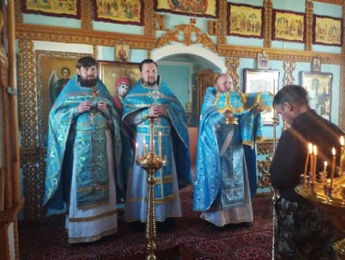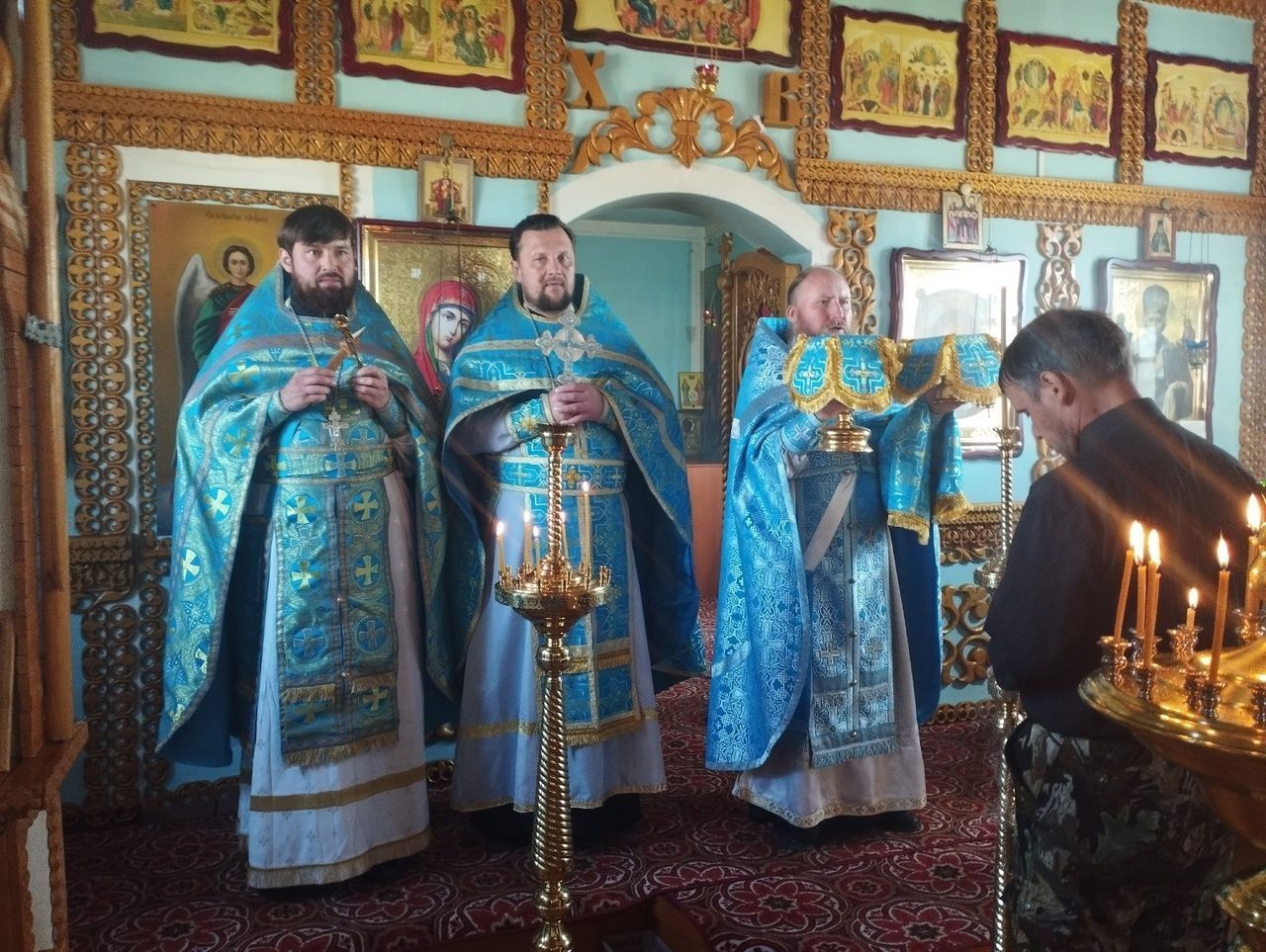 Литургию совершили настоятель храма иерей Игорь Лебедев и священники, сопровождающие крестный ход – настоятель храма Владимирской иконы Божией Матери с. Владимирское Горномарийского района иерей Алексий Васюткин и настоятель храма Покрова Пресвятой Богородицы с. Покровское Горномарийского района иерей Сергий Иванов. Храм был полон прихожан и паломников, многие причастились Святых Христовых Таин.