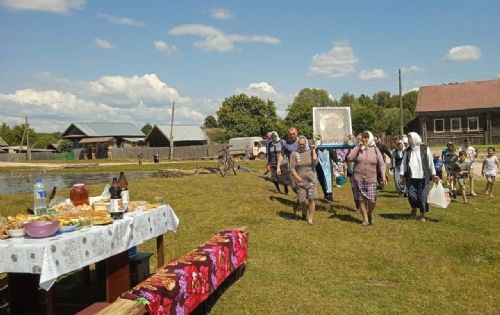 Далее маршрут крестного хода лежал по Килемарскому району в село Визимьяры. По пути сделали остановку в деревне Евсейкино, где чудотворный образ хлебосольно встретили местные жители. Отец Алексий Васюткин и отец Сергий Иванов отслужили молебен, на который собрались не только жители Евсейкино, но и расположенных рядом деревень Алатайкино и Пинжедыр. И Владимирская икона Богородицы была отправлена в Визимьяры, в недавно построенный в селе храм в честь иконы Божией Матери «Умиление».