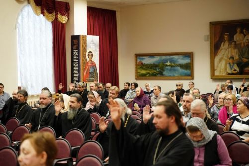 В собрании приняли участие правящие архиереи – митрополит Йошкар-Олинский и Марийский Иоанн и епископ Волжский и Сернурский Феофан, представители духовенства Йошкар-Олинской и Волжской епархий, сотрудники епархиальных отделов, помощники благочинных по миссионерской и катехизической работе, педагоги, деятели культуры, общественники.