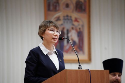 Также собравшихся приветствовали епископ Волжский и Сернурский Феофан, Глава городского округа «Город Йошкар-Ола» Виктор Кузнецов, мэр Йошкар-Олы Евгений Маслов и директор МарНИИЯЛИ Людмила Григорьева.