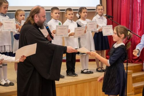 По доброй традиции отец Евгений вручил похвальные листы отличникам – их в гимназии всегда было немало, а в этом году даже больше, чем обычно. А их родители получили благодарственные письма.