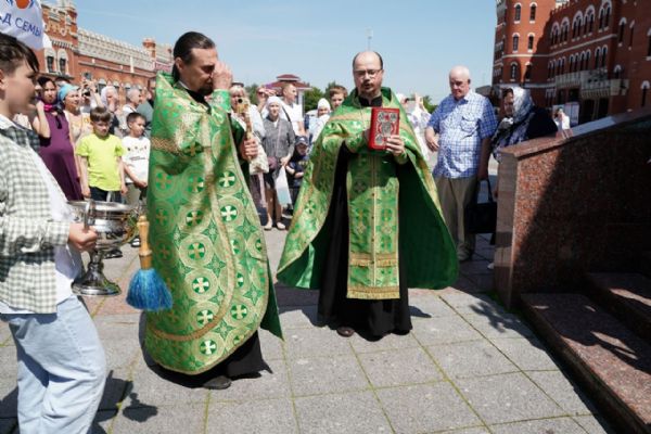 ΠΠΎΠ·Π³Π»Π°Π²ΠΈΠ»ΠΈ ΠΌΠΎΠ»ΠΈΡΠ²Π΅Π½Π½ΠΎΠ΅ ΡΠ΅ΡΡΠ²ΠΈΠ΅ Π½Π°ΡΡΠΎΡΡΠ΅Π»Ρ ΠΠΎΡΠΊΡΠ΅ΡΠ΅Π½ΡΠΊΠΎΠ³ΠΎ ΡΠΎΠ±ΠΎΡΠ° ΠΈΠ΅ΡΠ΅ΠΉ ΠΠ½Π΄ΡΠ΅ΠΉ ΠΠΎΡΠ°ΠΊΠΎΠ² ΠΈ ΡΡΠΊΠΎΠ²ΠΎΠ΄ΠΈΡΠ΅Π»Ρ ΡΠΎΡΠΈΠ°Π»ΡΠ½ΠΎΠ³ΠΎ ΠΎΡΠ΄Π΅Π»Π° ΠΠΎΡΠΊΠ°Ρ-ΠΠ»ΠΈΠ½ΡΠΊΠΎΠΉ Π΅ΠΏΠ°ΡΡ ΠΈΠΈ ΠΈΠ΅ΡΠ΅ΠΉ ΠΠ»Π΅ΠΊΡΠΈΠΉ ΠΠΈΡ Π΅Π΅Π². Π ΡΠ°ΡΠΎΠ²Π½Π΅ Π±ΡΠ» ΡΠΎΠ²Π΅ΡΡΠΈΠ» ΠΌΠΎΠ»Π΅Π±Π΅Π½ ΡΠ²ΡΡΡΠΌ Π±Π»Π°Π³ΠΎΠ²Π΅ΡΠ½ΡΠΌ ΠΠ΅ΡΡΡ ΠΈ Π€Π΅Π²ΡΠΎΠ½ΠΈΠΈ, Π±Π°ΡΡΡΠΊΠΈ ΡΠ΅Π΄ΡΠΎ ΠΎΠΊΡΠΎΠΏΠΈΠ»ΠΈ ΡΠΎΠ±ΡΠ°Π²ΡΠΈΡ ΡΡ ΡΠ²ΡΡΠΎΠΉ Π²ΠΎΠ΄ΠΎΠΉ.