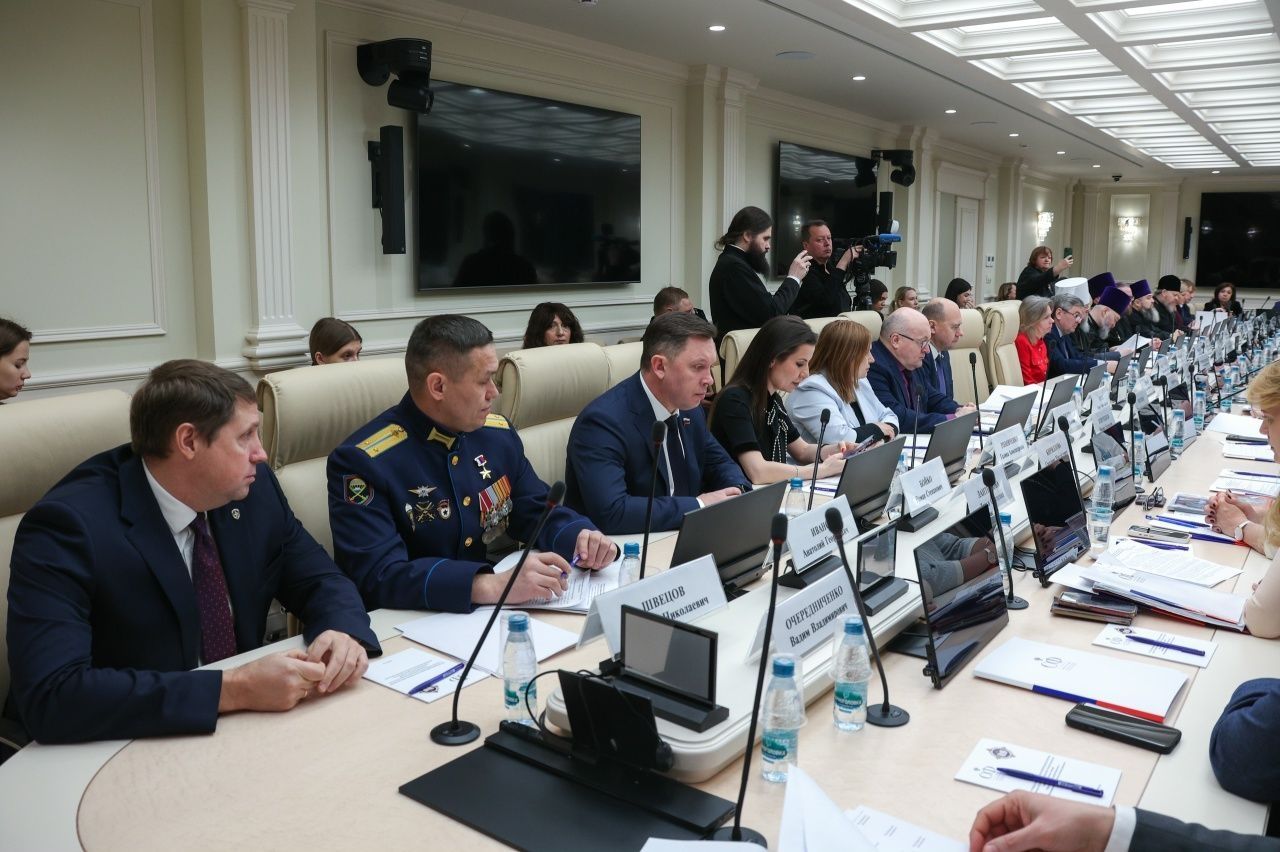 Сопредседателями заседания выступили: председатель Синодального отдела по взаимодействию с Вооруженными Силами и правоохранительными органами митрополит Ставропольский и Невинномысский Кирилл; первый заместитель председателя Комитета Совета Федерации по социальной политике Ж.Ю. Чефранова; член Комитета Совета Федерации по обороне и безопасности А.Л. Деркач; председатель Синодального отдела по церковной благотворительности и социальному служению протоиерей Михаил Потокин.
