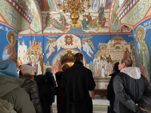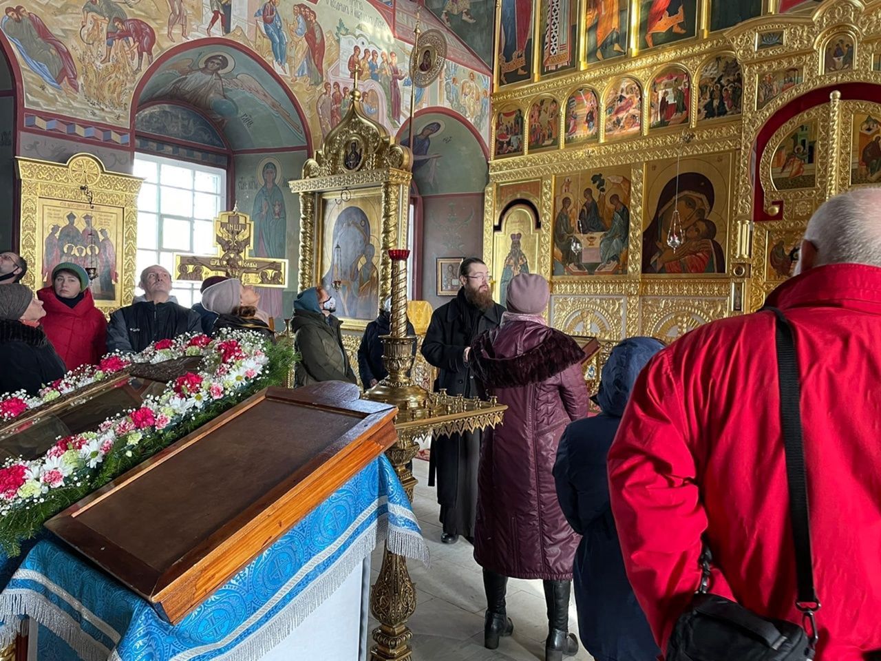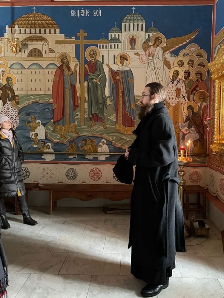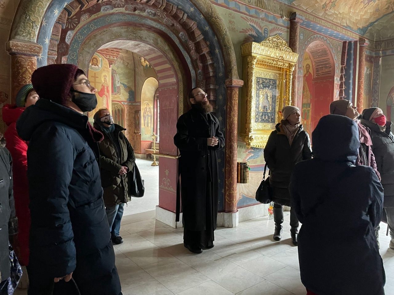 В качестве экскурсовода выступил директор Паломнической службы «Елеон» и сотрудник Миссионерского отдела епархии чтец Григорий Михеев, который познакомил собравшихся с историей восстановления собора и его внутренним убранством. В Крестовоздвиженском приделе эксурсоводы ознакомились с преданием о Древе Креста Господня, традициями иконописного изображения евангелистов и некоторых святых. В главном Вознесенском приделе гости узнали об устройстве православного иконостаса, его символике.